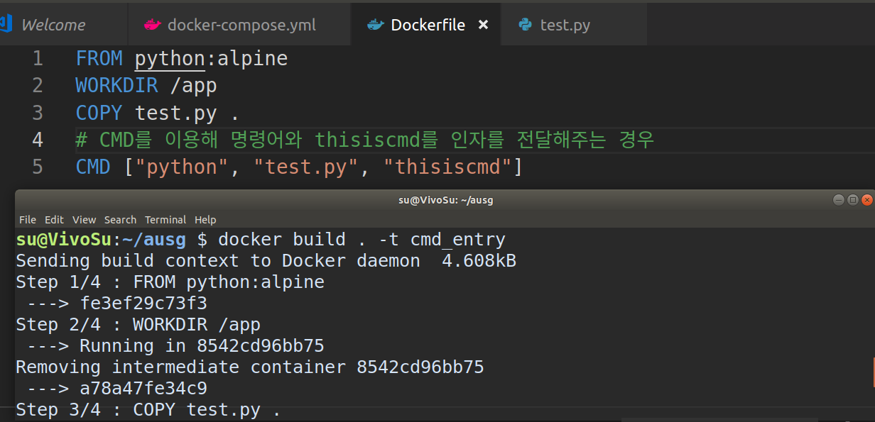 나는 아래의 Dockerfile을 가지고 cmd_entry라는 이미지를 빌드했고 run시켰다
