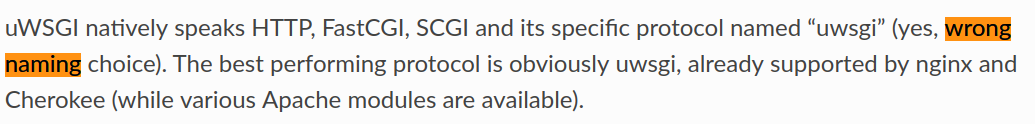 웹앱과 웹서버가 소통하기 위한 인터페이스인 WSGI를 구현한 것이 uWSGI인데, 헷갈리는 것이 uwsgi는 프로토콜을 의미하기도 합니다.