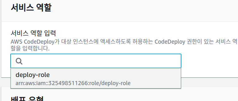 아까 생성한 CodeDeploy를 위한 IAM Role을 선택해준다.