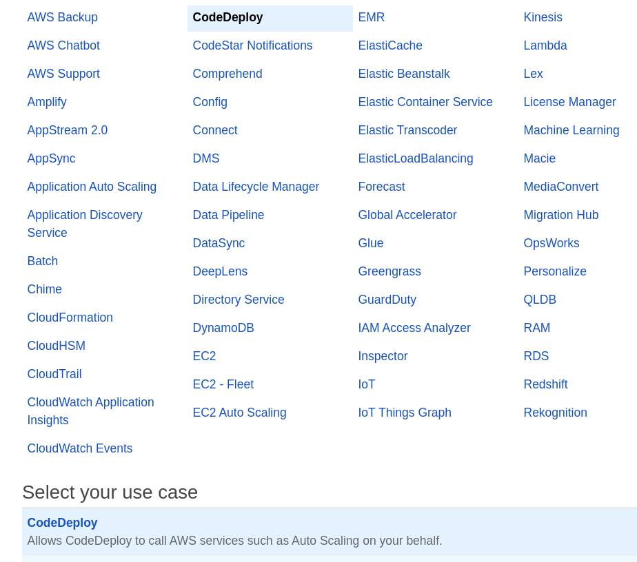 CodeDeploy가 배포과정에서 사용할 IAM Role이 하나 필요하다.
