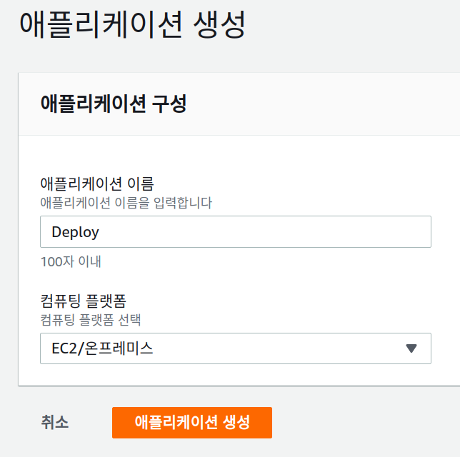EC2 에 배포할 계획이므로 사진과 같이 애플리케이션을 생성해준다.