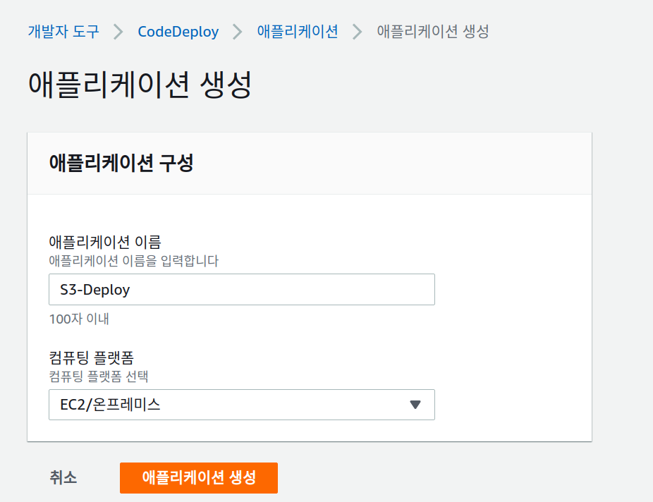 애플리케이션 생성은 그냥 간단히 EC2/온프레 로 설정해주기만 하면 되고