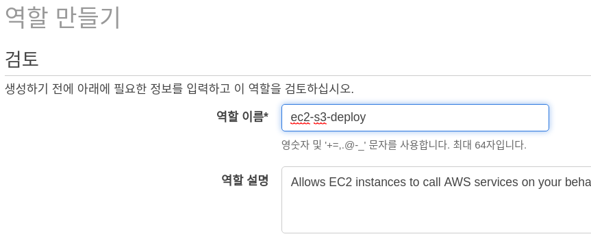 이 Role의 이름은 deploy-s3-role이라고 설정했다.