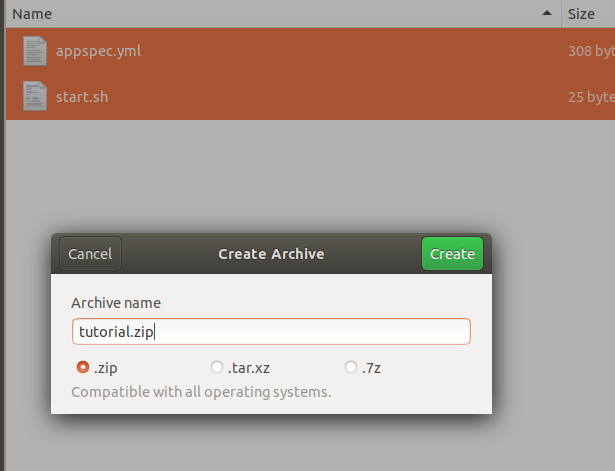 이렇게 난 codedeploy-tutorial-007이라는 버킷에 tutorial.zip 이라는 zip file을 업로드 했다.