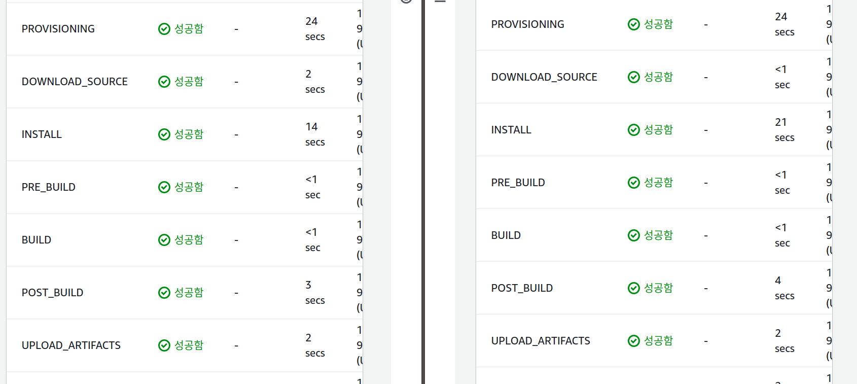 여담으로 캐싱이 잘 동작하는 지 확인하는 방법은 우선 S3의 캐시 디렉토리를 삭제하고 빌드를 한 뒤, 이어서 한 번 더 빌드를 해본 뒤 세부 작업 시간을 비교해보는 것입니다.