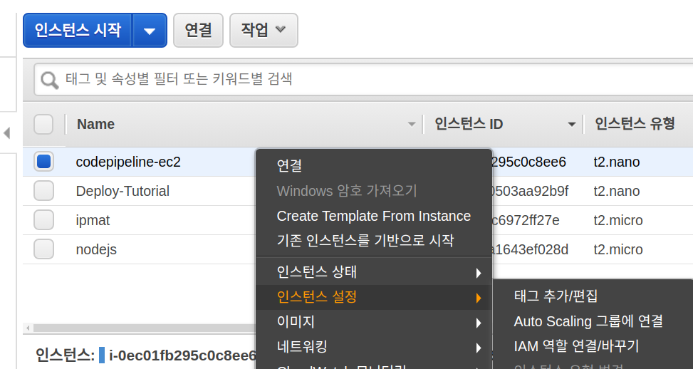 EC2 Instance를 생성하고 IAM Role을 부여한 뒤 codedeploy-agent 설치