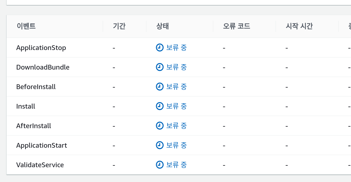 ❗❗❗ 만약 CodeDeploy 과정 중 오랜 시간동안 실패 결과도 나오지 않은 채 진행 중인 경우