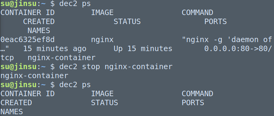 (마지막 줄만 보면 됩니다.) 저는 docker ec2라는 의미에서 dec2를 적어보았습니다.