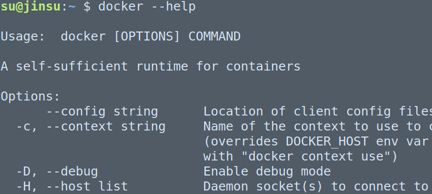 docker --help를 통해 알아보니 -H를 이용해 연결할 host를 설정하라는 군요.