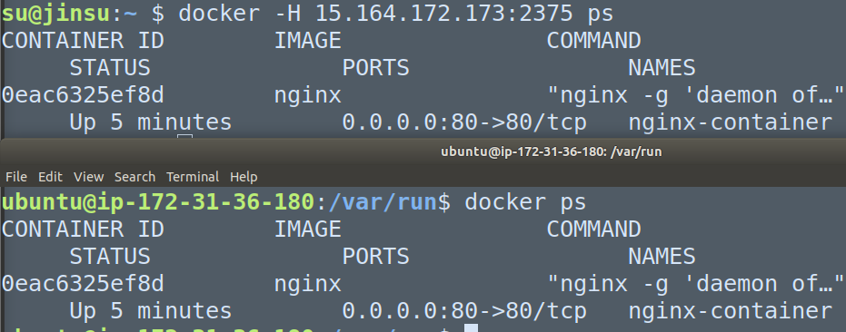 이럴수가..!! 저만 신세계인건가요..? 너무도 쉽게 원격으로 docker daemon을 이용할 수 있나봅니다.