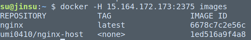 docker -H {DOCKER_HOST_IP} images을 입력해봅시다.